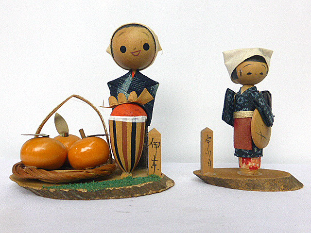 - A133 昭和レトロ土産 伊東みかん娘 蜜柑 宇奈月 こけし 2体 ・置物/オブジェ/ディスプレイ・250508