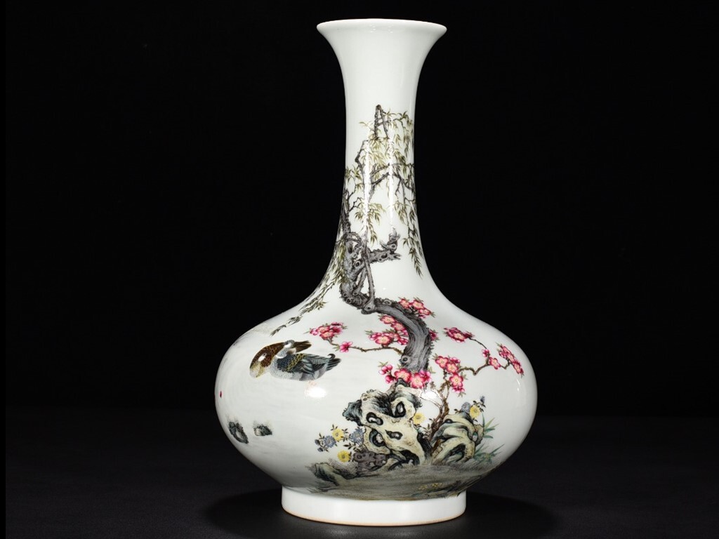 - TA245■中国古玩 唐物 清雍正年製 款 琺瑯彩鴛鴦花卉紋賞瓶 極上品■