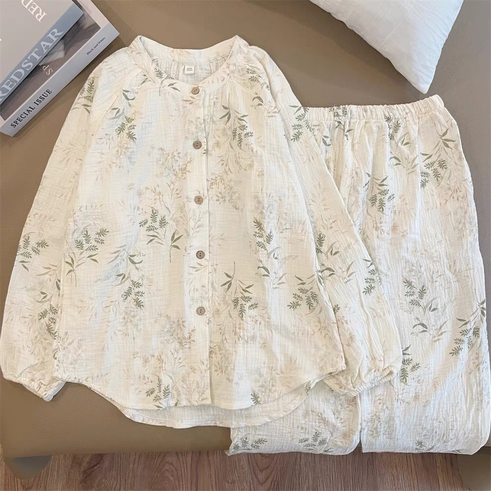 - 新入荷パジャマ ルームウェア レディース ガーゼパジャマ 花柄 春 長袖パジャマ 2層ガーゼ トップス+パンツ 2点セット 可愛い (M-2XL)