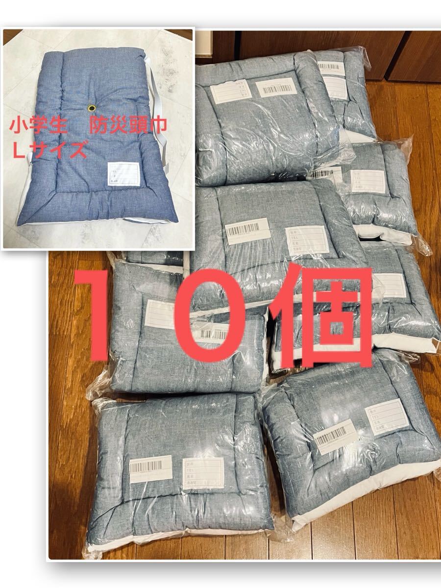 - 10個セット 新品 日本製 防災頭巾 小学生用 Lサイズ 日本防炎 デニム柄 ブルー