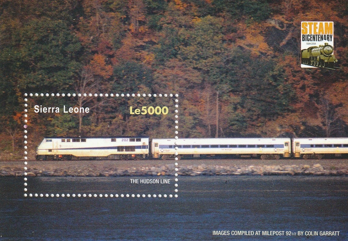 - (シエラレオネ)2004年蒸気機関車200周年小型シート、スコット評価4ドル(海外より発送、説明欄参照)