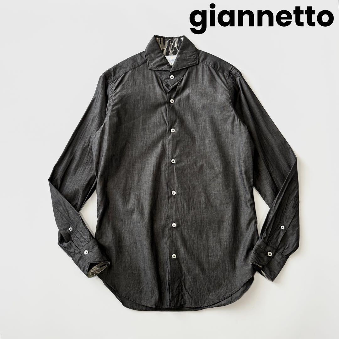 > giannetto ジャンネット SLIM FIT ワイドカラー コットン シャツ S グレー スリムフィット カッタウェイ ホリゾンタル 綿 刺繍 国内正規