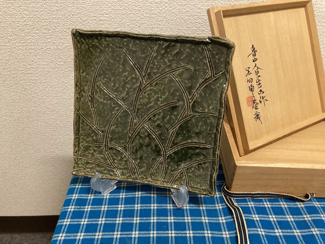 - 本物保証 黒田陶々庵極め北大路魯山人 織部野草文鉢 四方鉢 共箱 黒田陶々庵極め 本物返品OK 250508−24