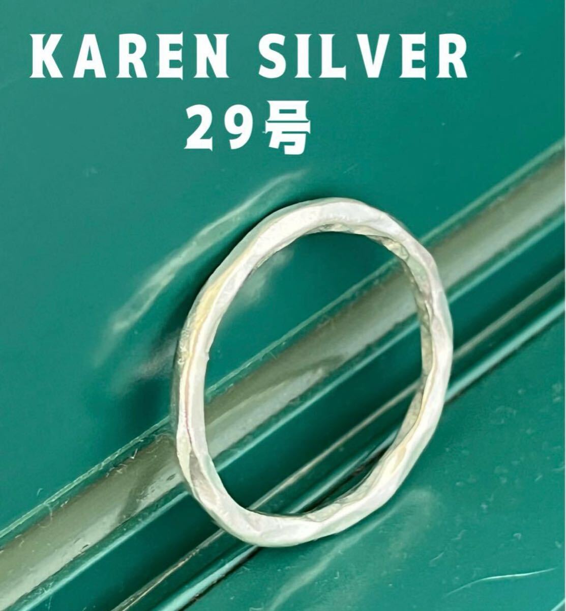 - R73ばアEへ5 カレンシルバーリング29号高純度Karensilver叩き打ち純銀甲丸指輪Eへ5
