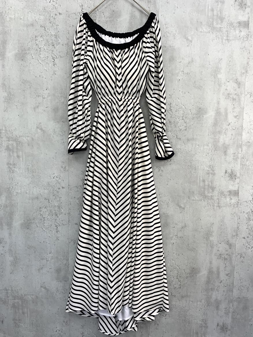 > ゆうパケットOK 美品 Estella.K エステラケー 123351289 Mykonos Open Sleeve Dress ワンピース sizeF/白×黒 ■◆◎ ☆ fea8 レディース
