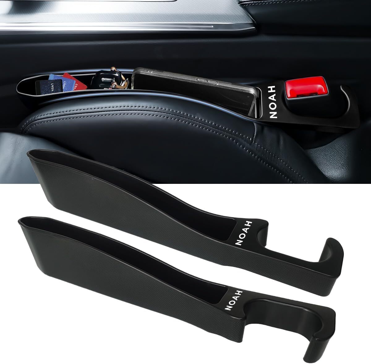 - ノア サイド隙間埋めクッション 大容量収納 シートサイド スマホ収納可能 NOAHロゴ左右対称設計 落下防止 運転席+助手席 2本セット