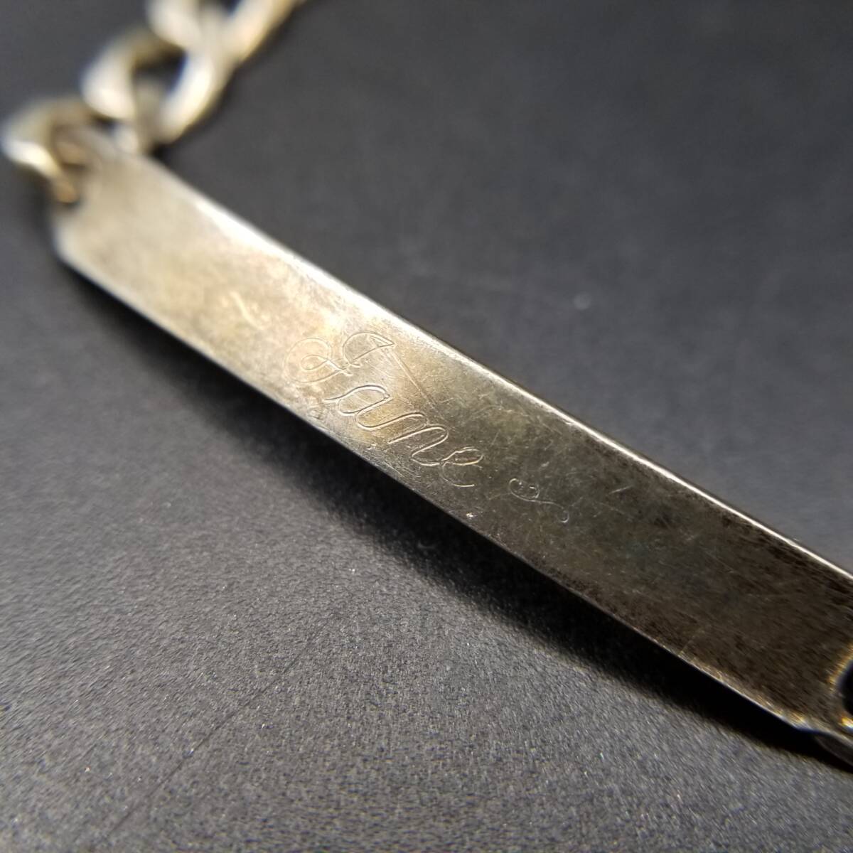 - IDタグ 長方形プレート 喜平チェーン 925 シルバー ヴィンテージ ブレスレット 銀 シンプル 細幅 ネーム彫金 Jane Y22-Y
