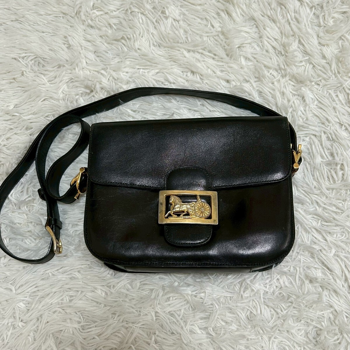 > CELINE セリーヌ レザー バッグ ショルダーバッグ vintage ブラック ヴィンテージ ゴールド金具 馬車金具 肩掛け イタリア製