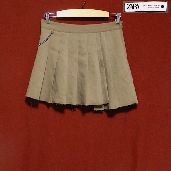 > ZARA ザラ 巻きスカート デザイン サイド ジップ ミニスカート プリーツスカート キュロット 濃い ベージュ 大きめ ビッグサイズ L 美品