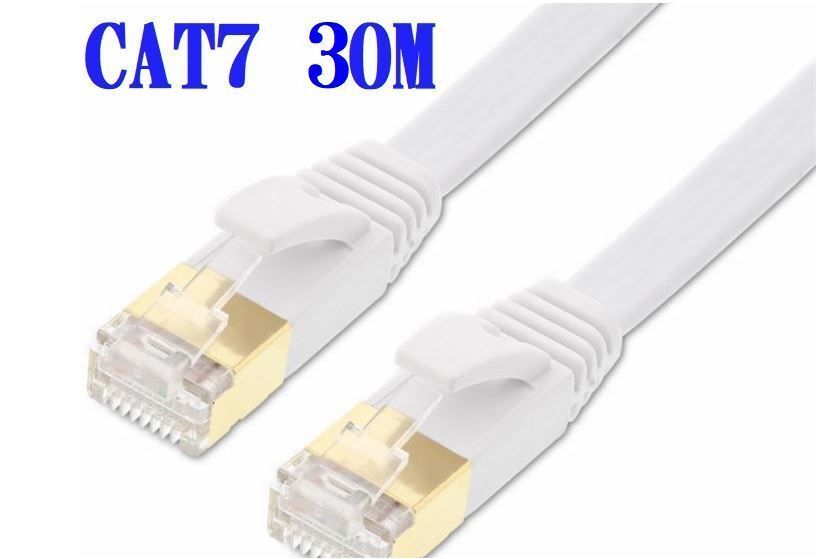 - ■送料無料■CAT7 30m LANケーブル ホワイト 10G 10ギガ対応 薄型 コネクタ 接続部金メッキ仕様