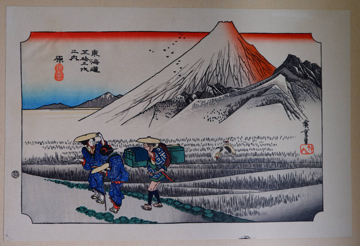 - 【お買得 極美】広重『東海道五十三次』保永堂より「原(朝の富士)」手摺木版画 高見沢研究所の真作 手刷り 歌川広重 べらぼう 浮世絵