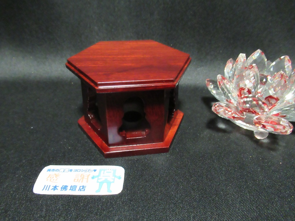 - 川本仏壇店「紫檀製 仏器台/背短/大/六角仏器台」紫丹/お仏飯/唐木/木製/川本仏