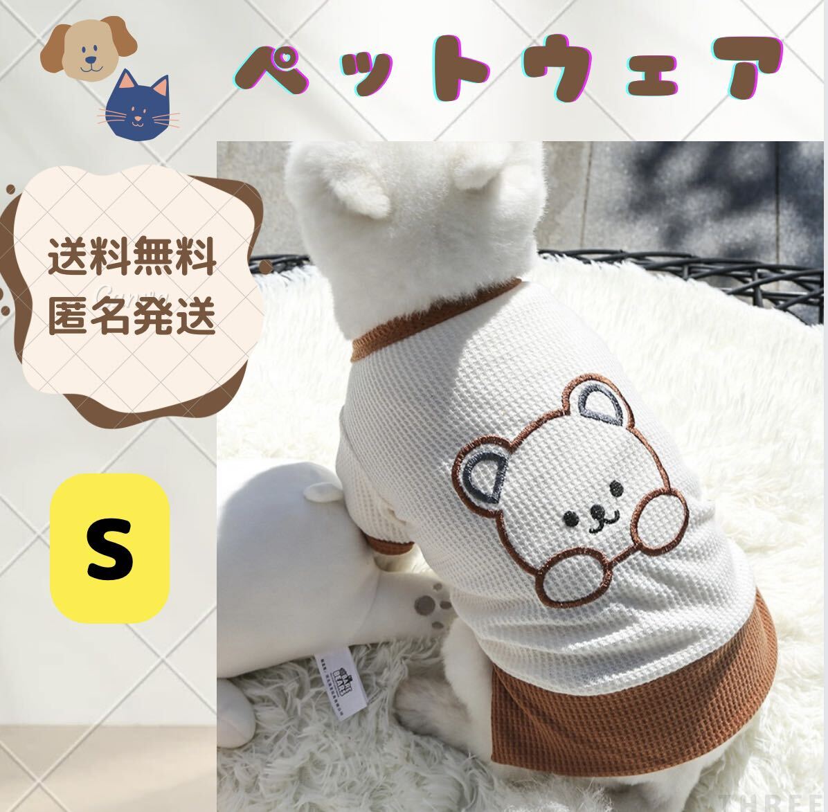 - 【クマ柄】犬服 ペット 小型犬 猫 可愛い 抜け毛防止 可愛い 秋冬 散歩 前足 Sサイズ