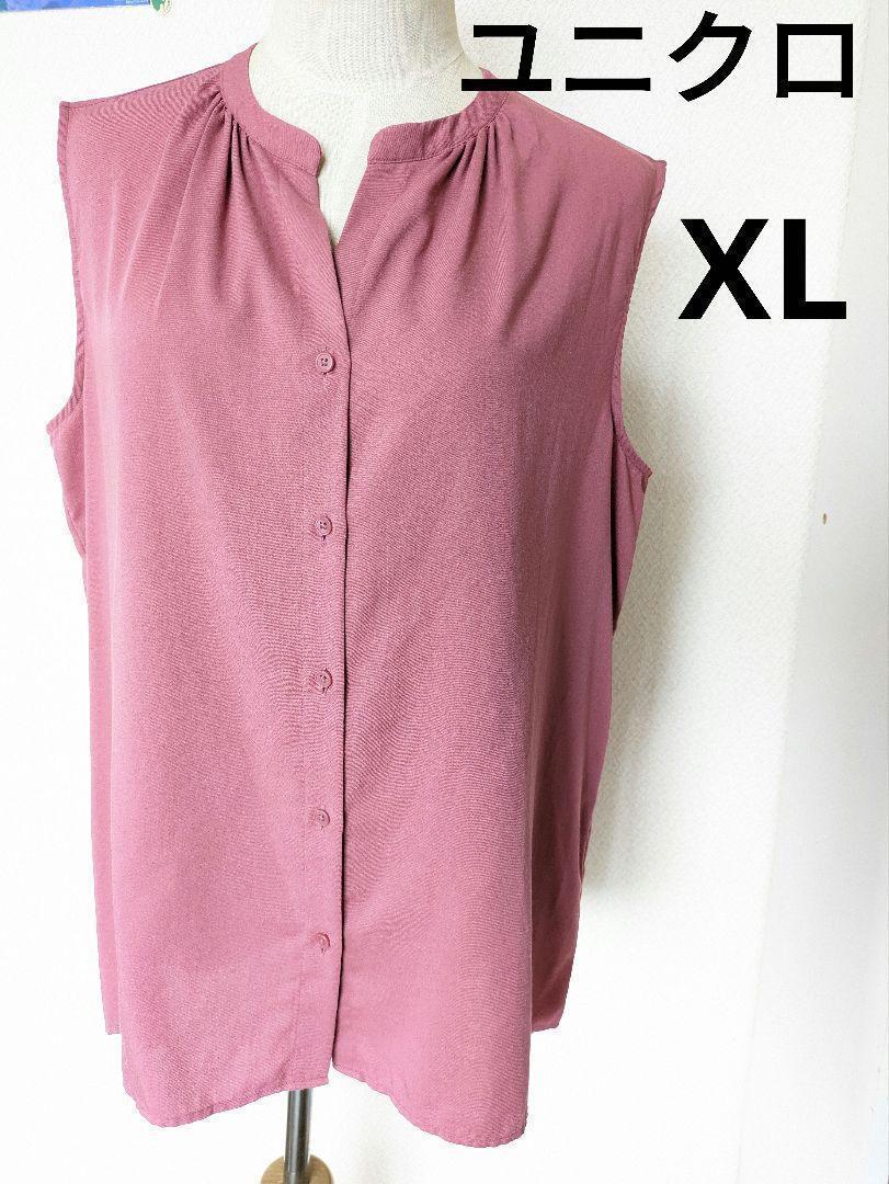 - ユニクロ レーヨン ノースリーブ ブラウス コーラルピンク XL