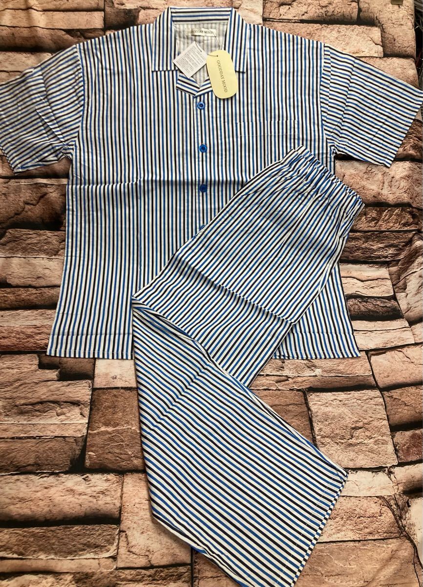 - 送料無料!さらさら快適!インド綿100% ストライプ柄 メンズパジャマ(2色から)1組
