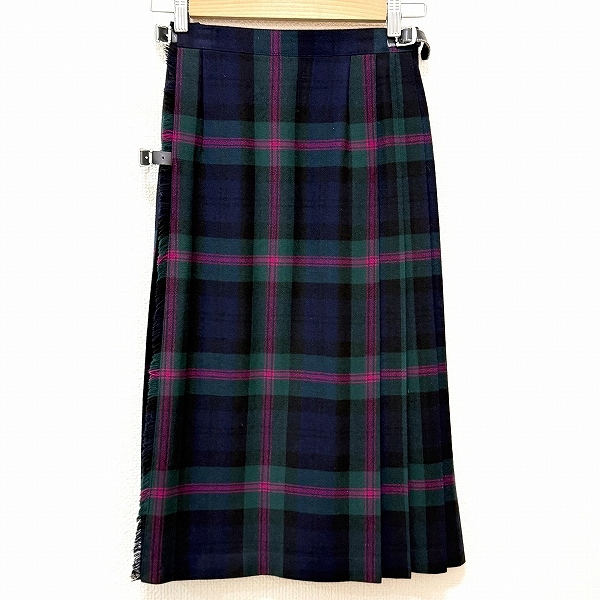 - #wnc ヨークランド YORKLAND スカート 紺 緑 赤 巻きスカート プリーツ チェック ベルト レディース [924879]