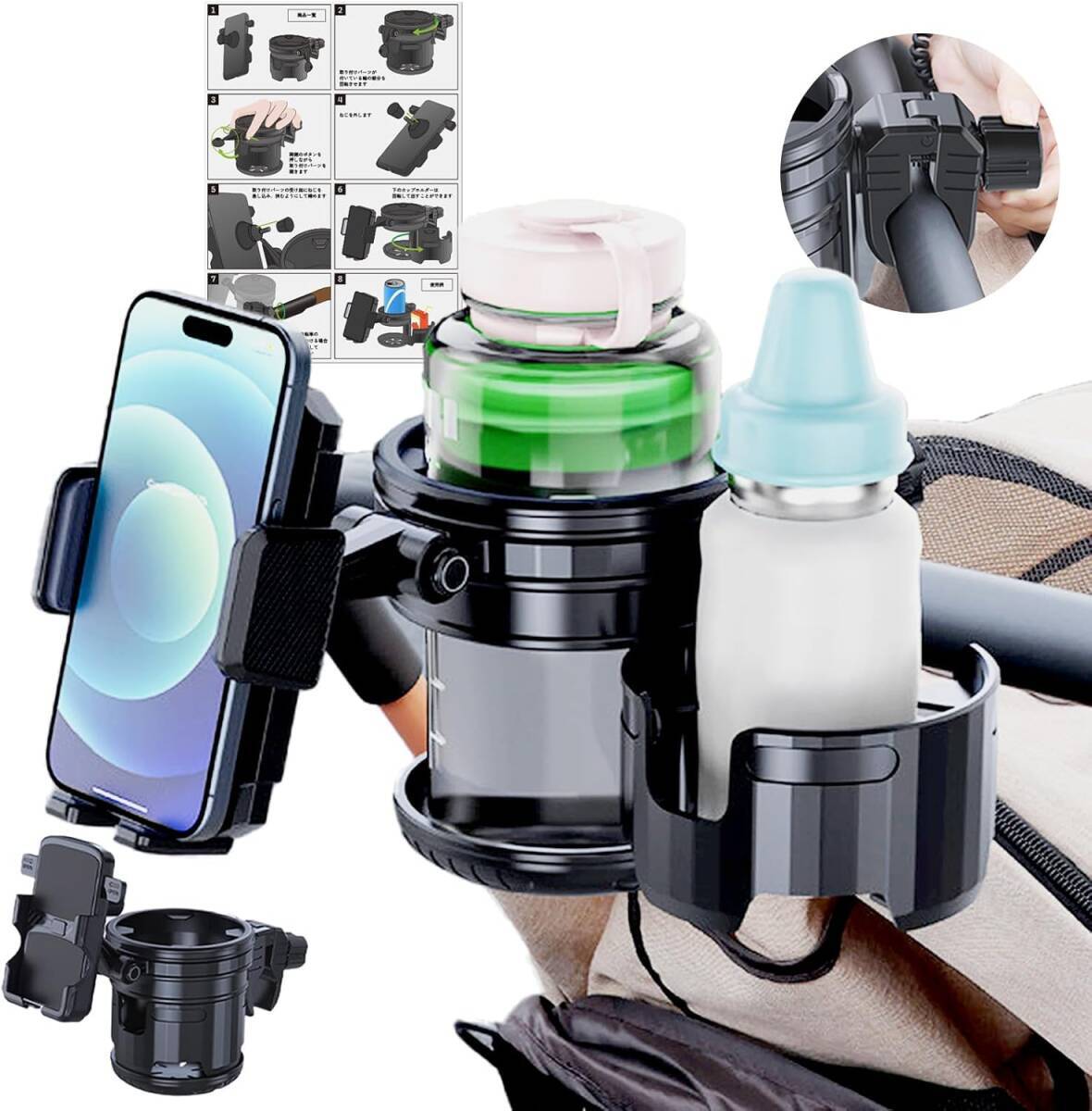 > RYUCHO ベビーカー ドリンクホルダー 3in1 自転車 バイク カップホルダー スマホ 哺乳瓶 ボトルホルダー ドリンク ホルダー カップ(no2)