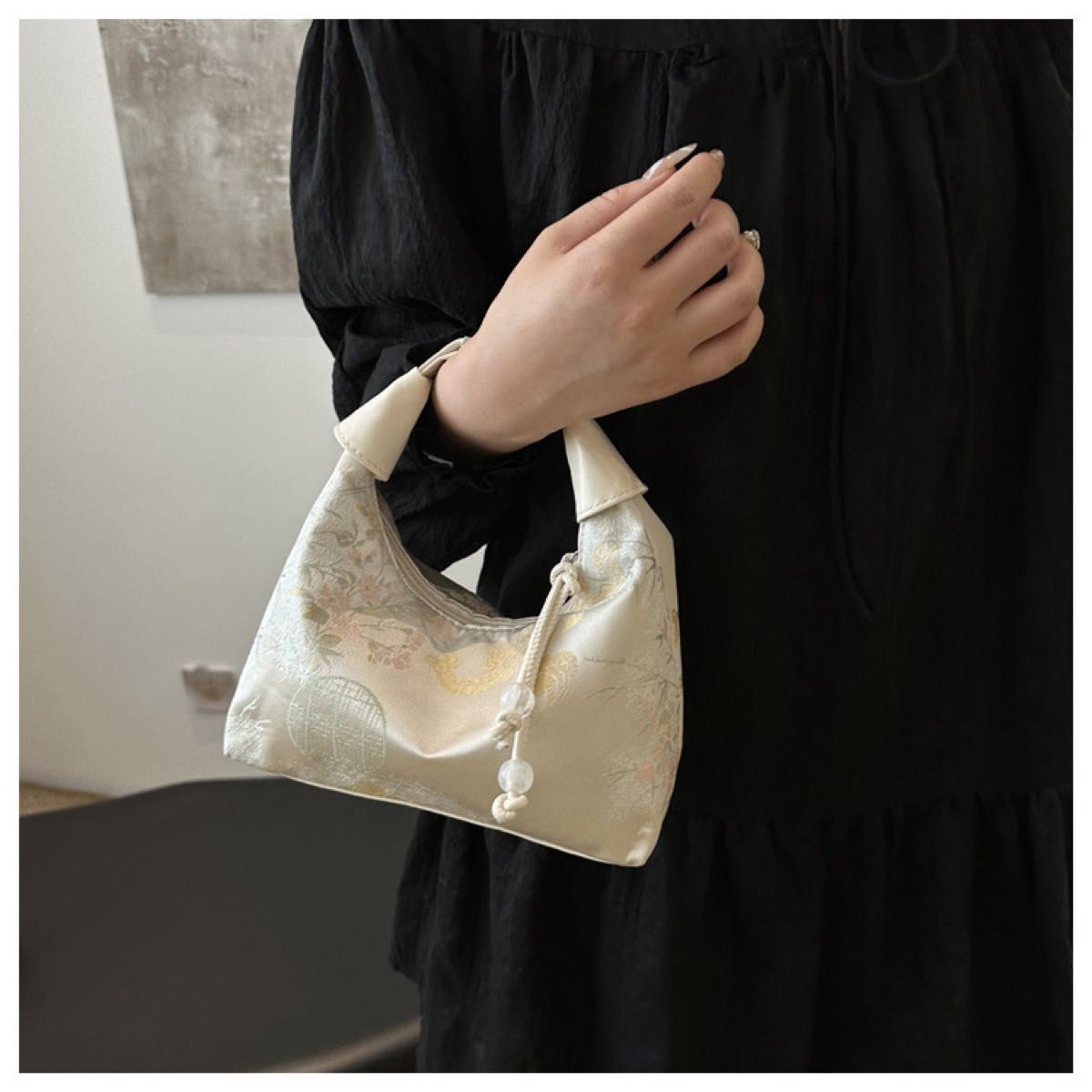 - ハンドバッグ ショルダーバッグ オフホワイト 白 刺繍柄 エンブロイダリー柄 ボディバッグ フォーマル 冠婚葬祭 結婚式 パーティ