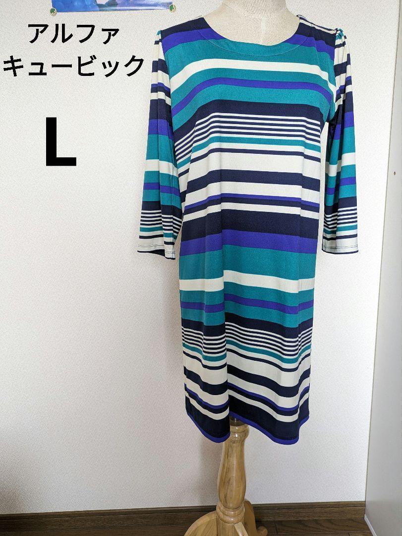 - アルファキュービックボーダーチュニック ワンピースグリーン系L