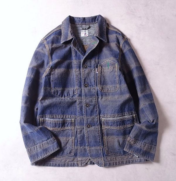 - Blue Trick ブルートリック カバーオール デニム ワーク ジャケット 日本製 山ポケ ヒッコリー メンズ (3) インディゴ ●r-604