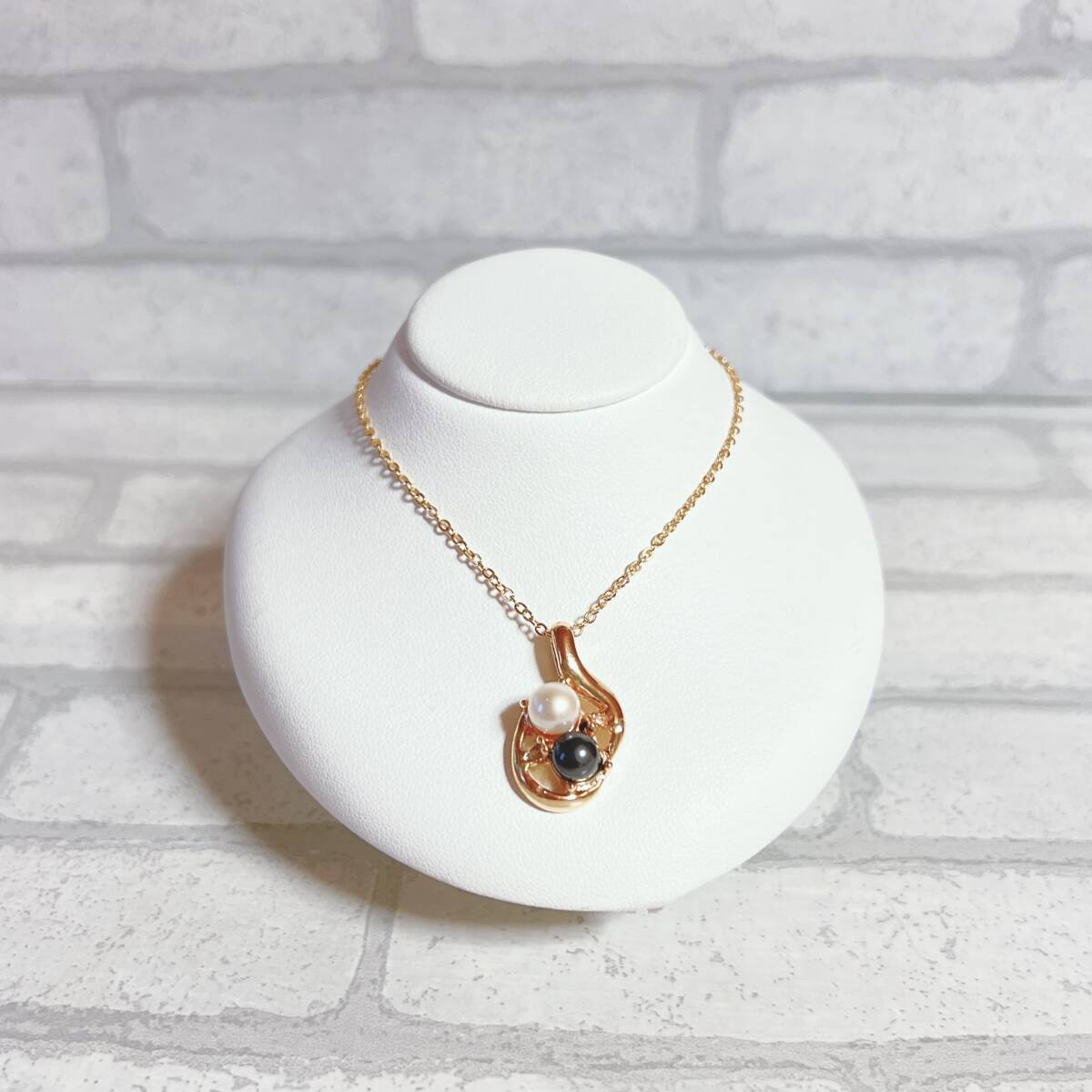 - ネックレス gold ゴールド パール 2粒 ブラック ホワイト アンティーク ヴィンテージ EL-0372