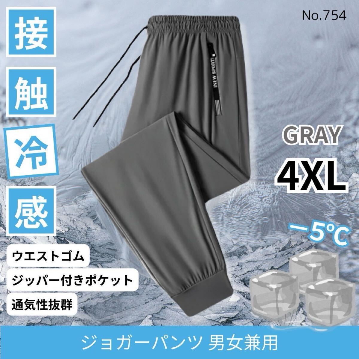 - ジョガーパンツ 接触冷感 男女兼用 グレー 4XL 冷感パンツ ジャージ