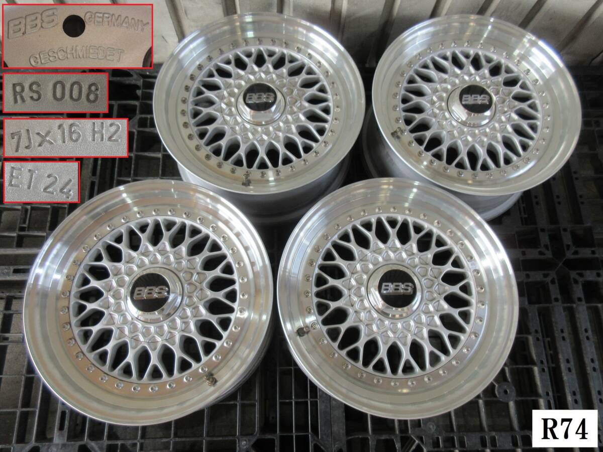 > Q9Q9 BBS 16インチ ホイール GERMANY RS 008 PCD112 5H(穴) 7J ET24 ハブ径66.5 鍛造 メッシュ センターキャップ付 4本セット 当時物?希少?