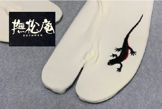 - 新柄入荷★★撫松庵おしゃれ足袋【オフホワイト・イモリ刺繍】ロング丈・振り袖袴