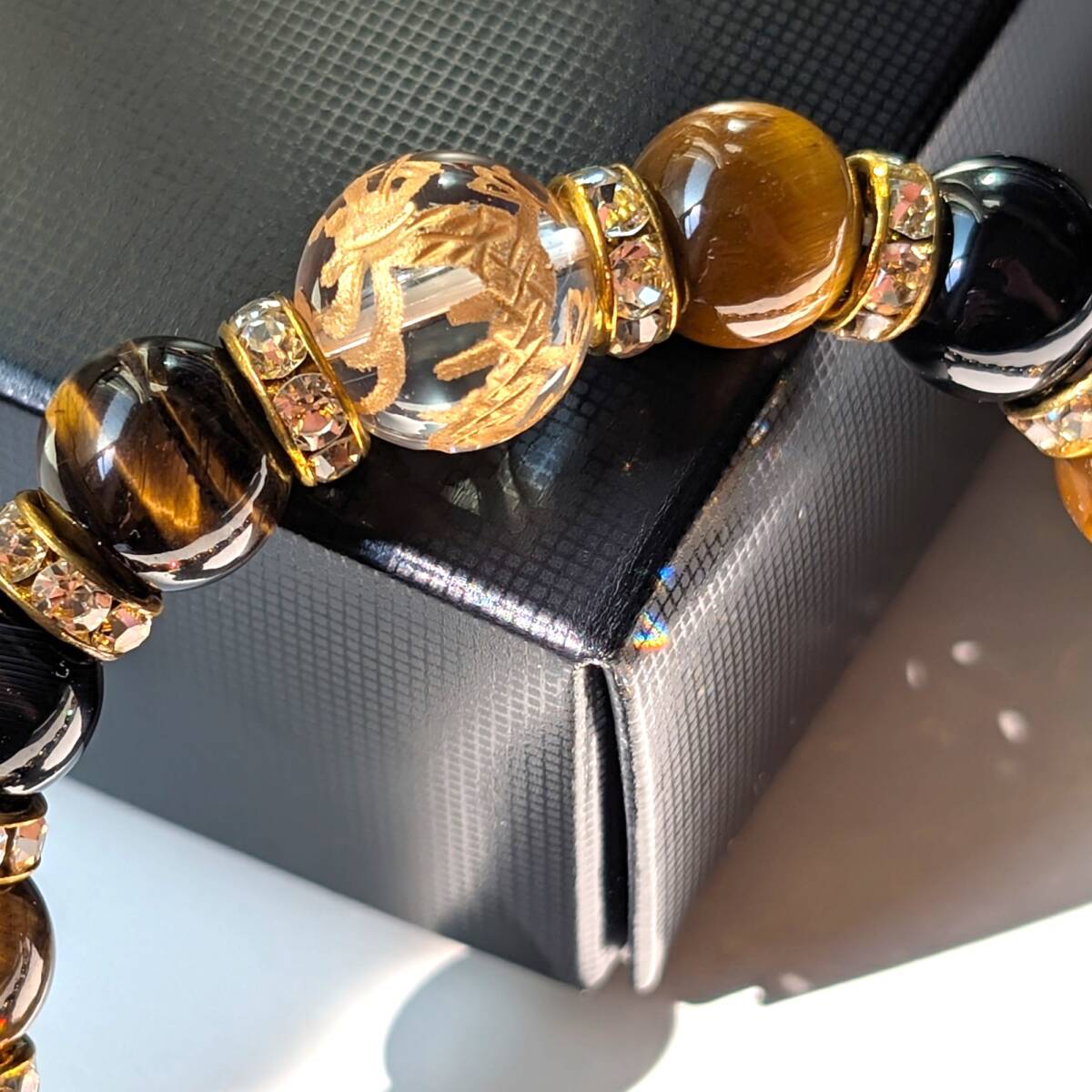 - 洞察力を高める パワーストーン 皇帝龍 本水晶 トラ目石 タイガーアイ オニキス ブレスレット 12mm 10ミリ 贈り物 ギフト プレゼント