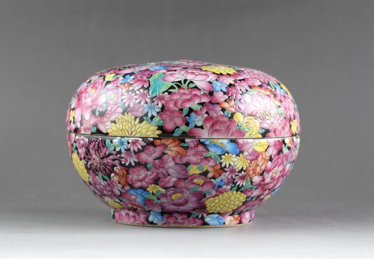 - 大清雍正年制款 粉彩萬花紋 大香合・古陶磁器 ・珍品旧蔵・古賞物・時代物