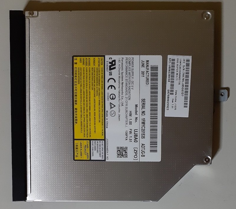 - 5494 ジャンク SATA内蔵 スリム DVDマルチドライブ Panasonic UJ8A0 マウンタ付き