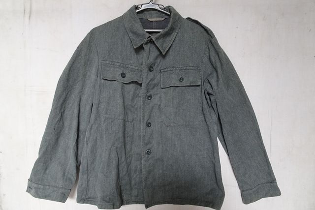 > スイス軍/ワークジャケット/アウター/デニム素材/両胸フラップポケット/ウエストサイド金具付/ミリタリー/インディゴブルー/グレー(5/13R7)
