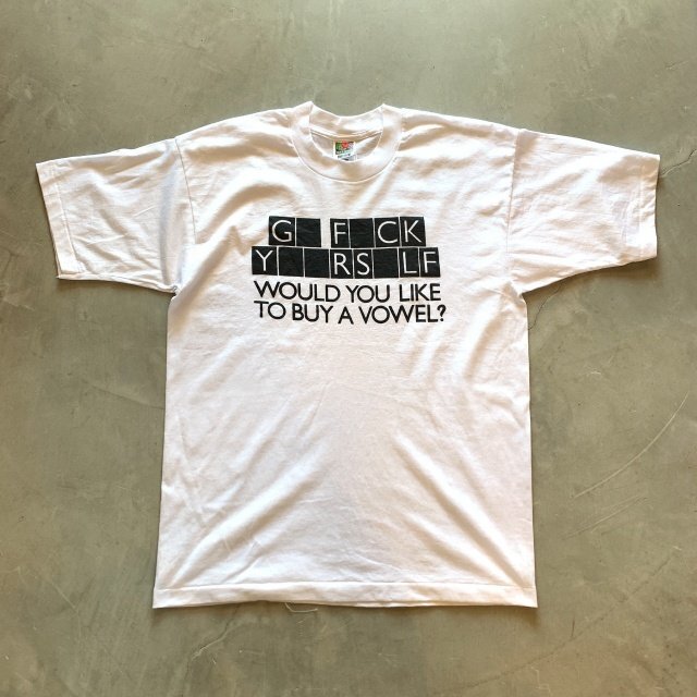 - 【L】90s-2000s「G〇 F〇CK Y〇〇R S〇LF」プリントTシャツ 白黒■ビンテージ オールド アメリカ古着 シングルステッチ フルーツ