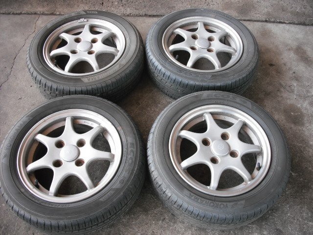 - 『B260』EA11R,F6A,カプチーノ,14×5J 45,4H 114,3 純正 アルミホイール 4本タイヤ付,no047 個人宅発送不可商品です。EA21R
