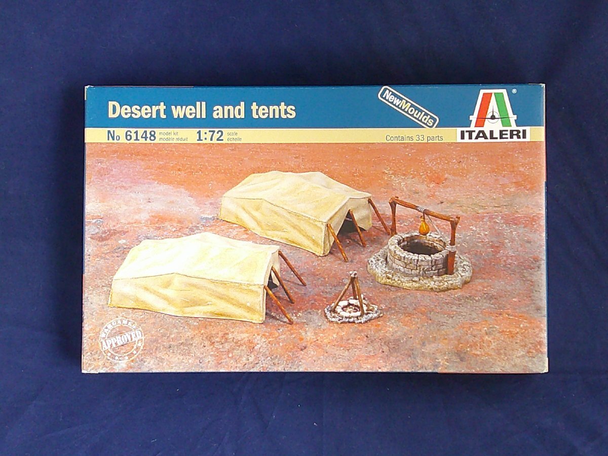 このキットでは1/72スケールで北アフリカ戦線をイメージした砂漠の井戸とその周りに設営されたかにテントをモデル化しています。