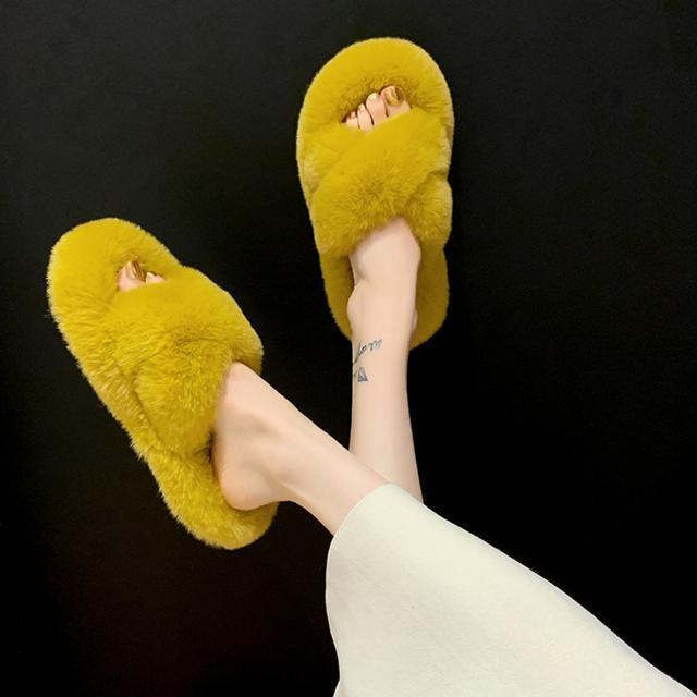 > ☆ イエロー ☆ 23.5CM(37) スリッパ おしゃれ 冬用 通販 ルームシューズ 冬 フェイク ファー レディース もこもこ あったか 大人 可愛
