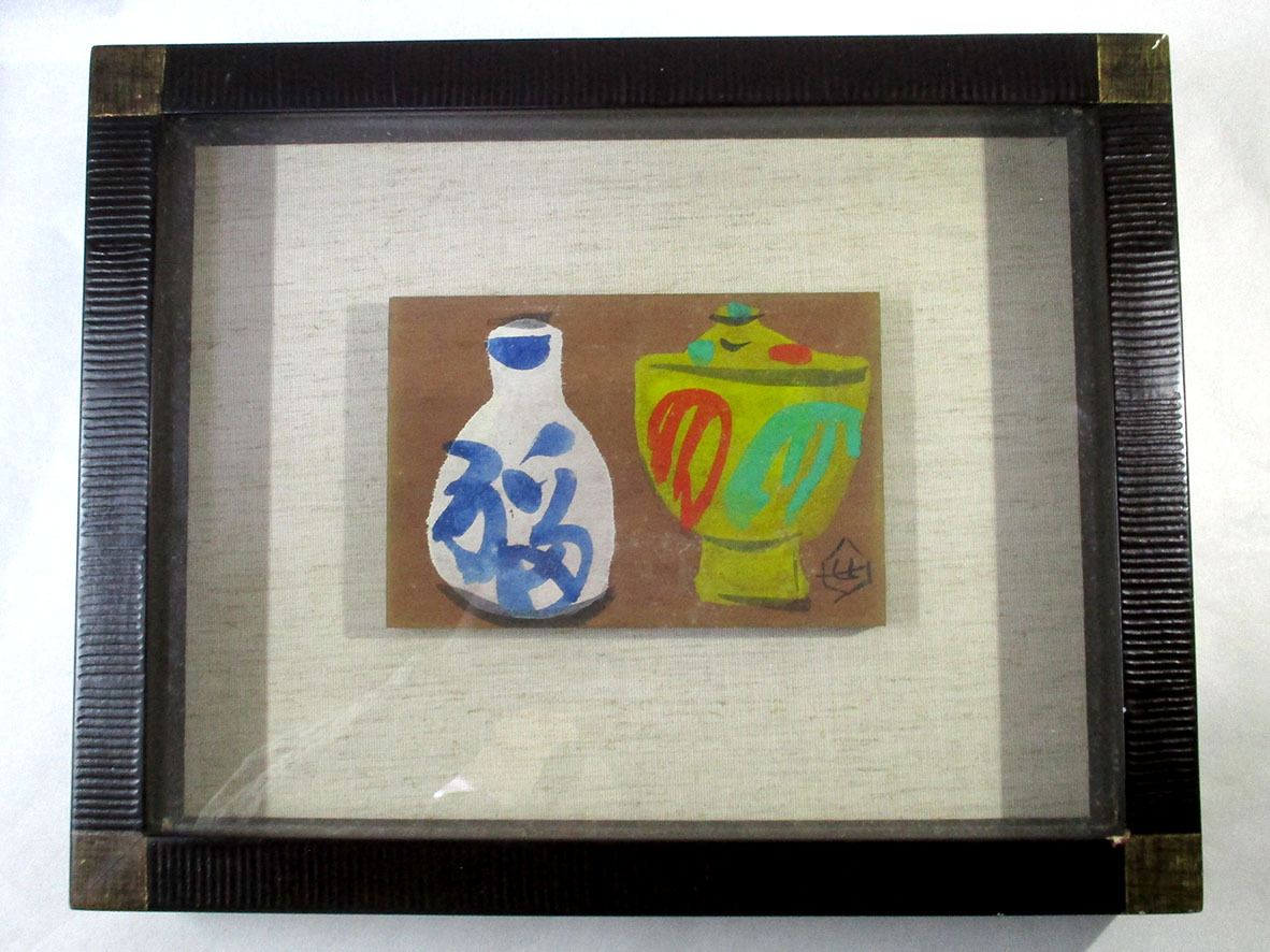 - ★芹沢銈介 「徳利と壺」 板絵 額入★S12959