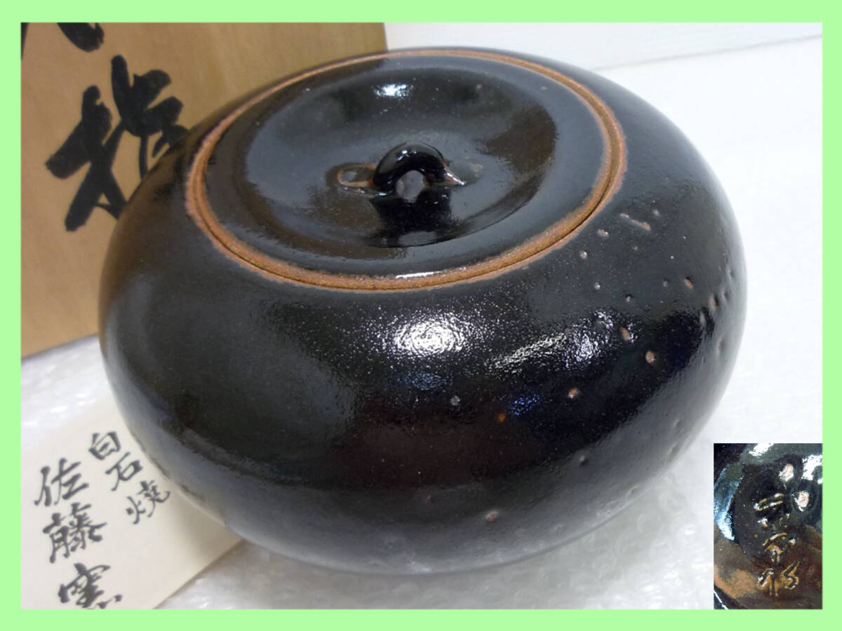 - 旧家蔵出 白石焼 佐藤窯 芳泉造 水指 蓋付 共箱 栞 秀逸作 希少 名品 逸品 本物 有田焼 桐箱 在銘 銘有 茶道具 茶器 煎茶 伝統工芸 縁起物