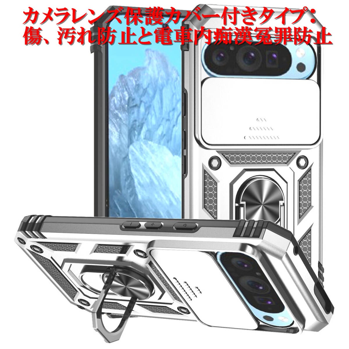> G シルバー Google Pixel 9 / Pixel 9 Pro ケース 本体 カバー 指リング 画面 保護 守る グーグル ピクセル 米軍 衝撃 頑丈 スタンド