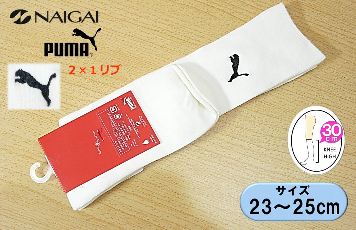 > 【レッグウェア★未使用品】PUMA◆白リブ セミハイソックス◆2×1リブ◆23-25cm◆30cm丈◆スクールソックス◆稀少◆