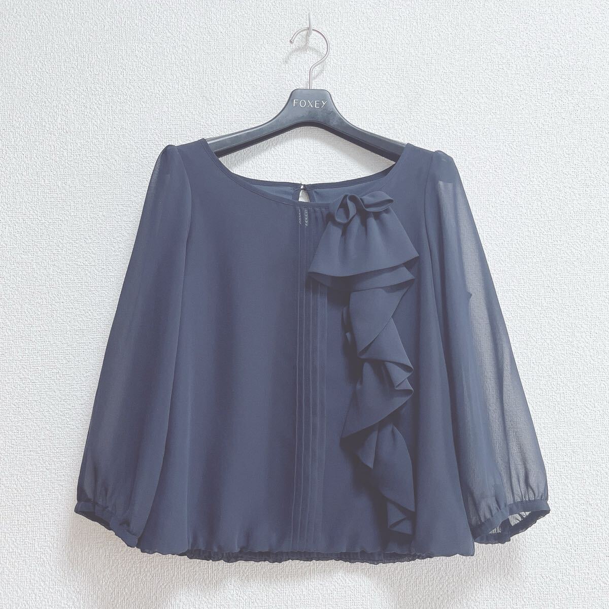 > SunaUna スーナウーナ◆洗える シフォン ブラウス 38 紺ネイビー◆トップス フリル シアー ワールド クードシャンス リフレクト