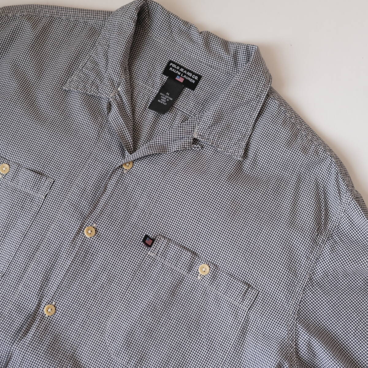 - 【 Polo Jeans Ralph Lauren 】ラルフローレン チェック柄 コットン オープンカラー 半袖シャツ / ブラック ホワイト 黒白 / XL / old 開襟