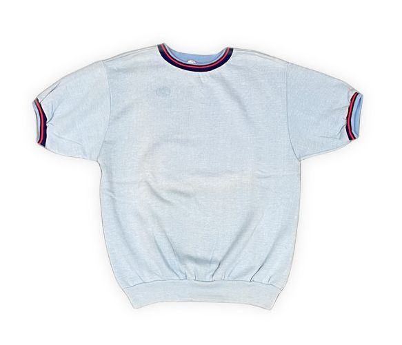 - デッドストック 60's 70's 米国製 スポーツウエア SPORTSWEAR RN14666 半袖 スウェット リブ フェード サックス ブルー M [la-1291]