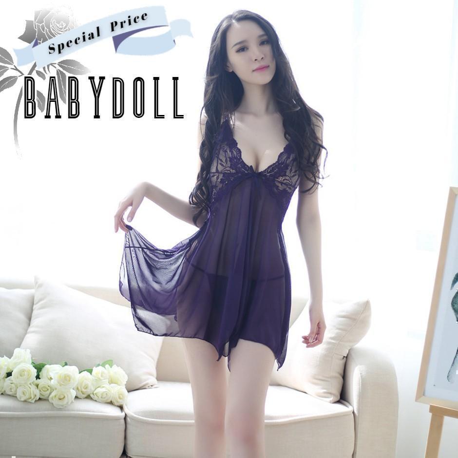 - ★SALE★ 可愛くてセクシー ナイトウェア ベビードール 前開き パープル