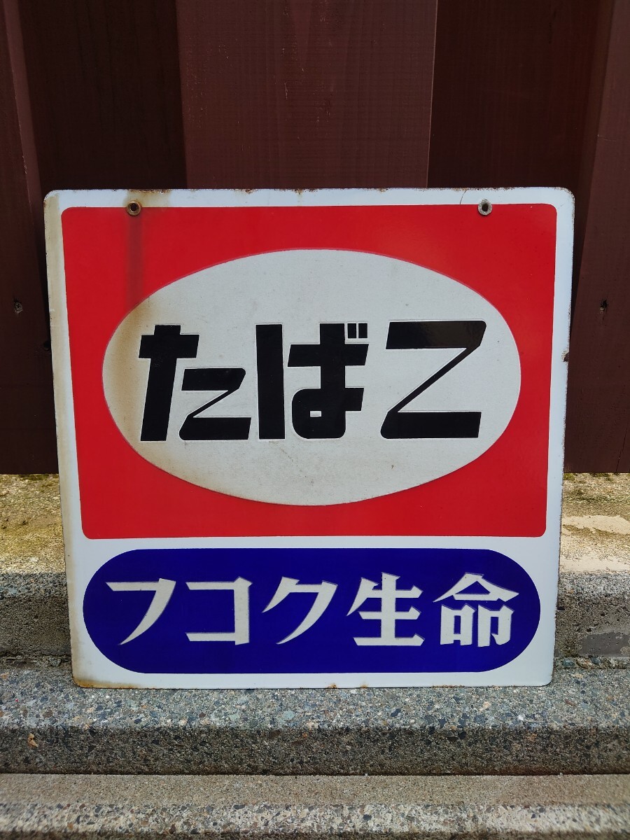 - 【昭和レトロ】たばこ フコク生命 ホーロー看板 琺瑯 サインプレート 当時物 両面