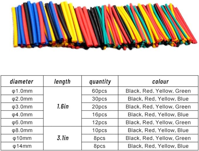 - 内径1mm-14mm 8サイズ 164本セット 熱収縮チューブ防水 難燃性 収縮チューブ 防水圧着スリーブ 熱圧着スリーブ 断熱チューブ