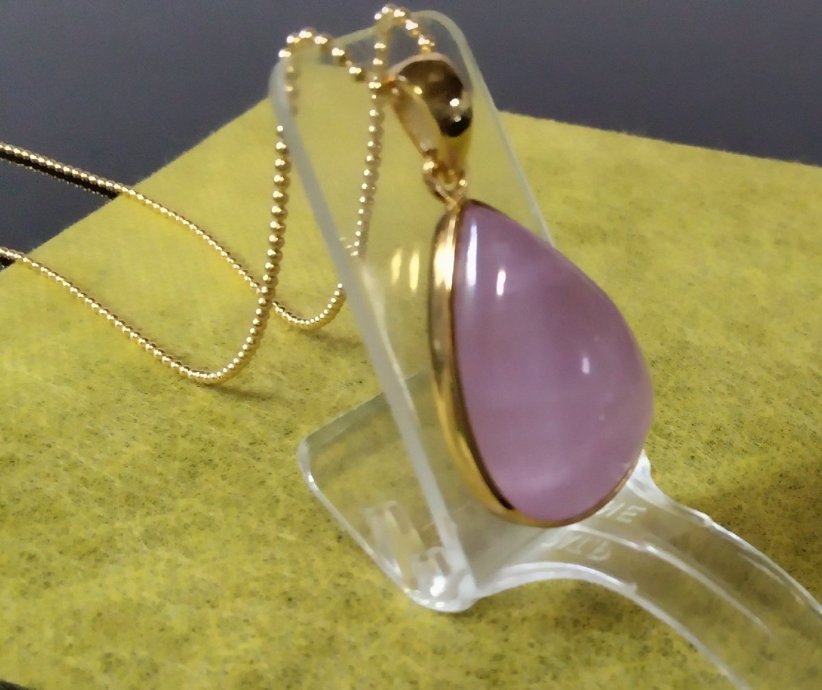 - ドロップ型の素敵なクンツァイトのゴールドネックレスNO.2