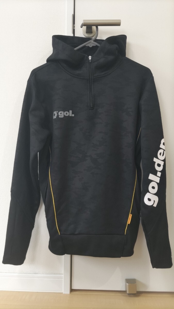 > 美品 gol. ゴル パーカー フーディ S 黒 ブラック プルオーバー ストレッチ サッカー フットサル 人気 速乾 スポーツ オシャレ 練習 軽量