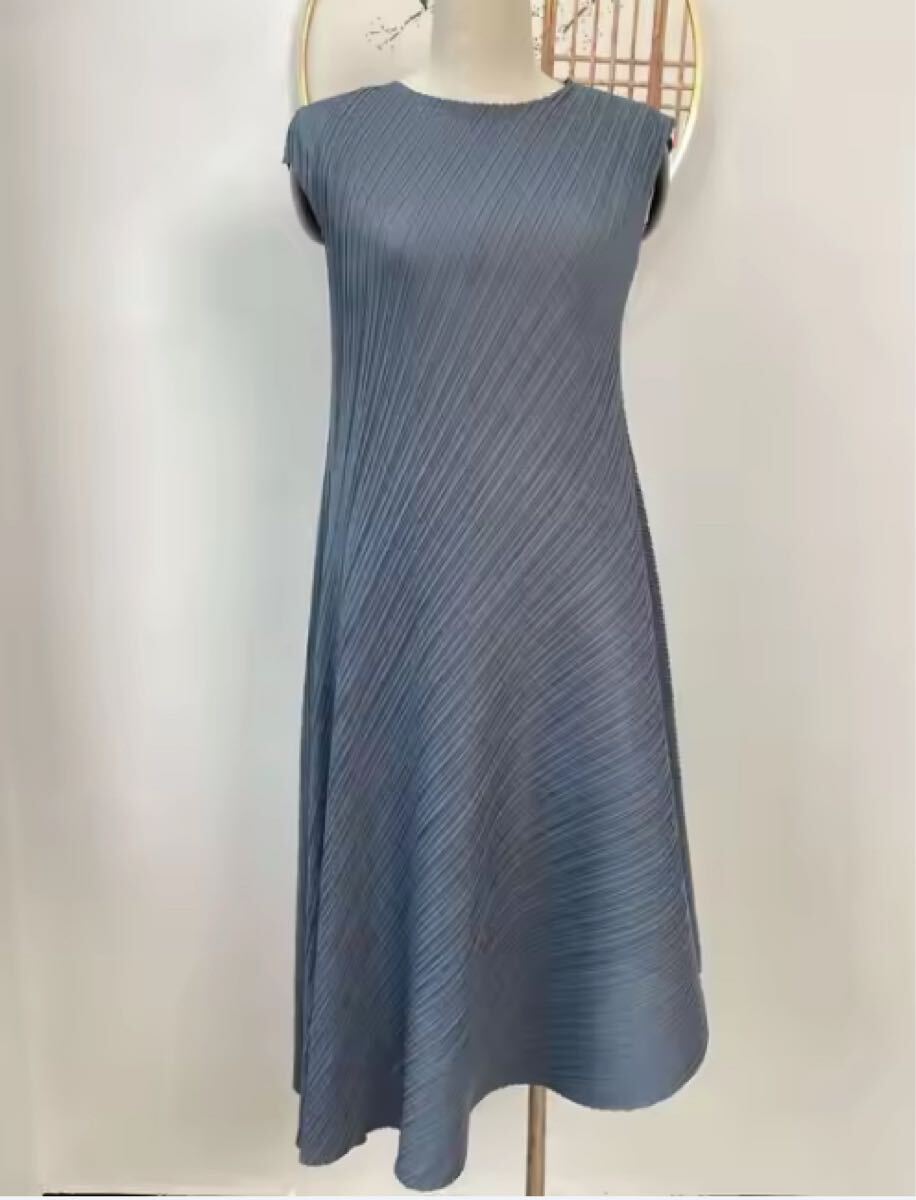 - 新品 グレーブルー色 プリンセス プリーツワンピース フリーサイズ