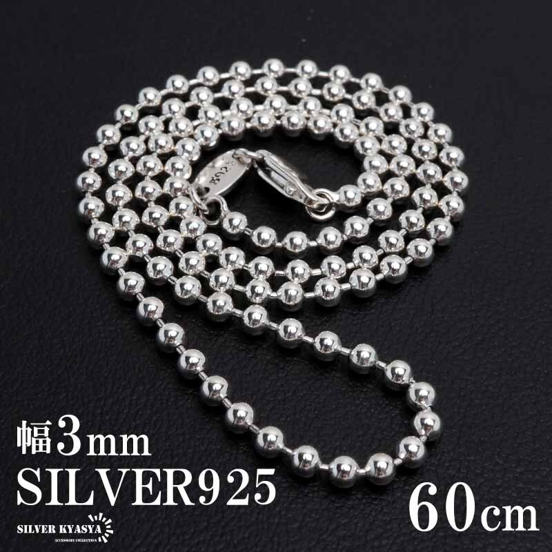 - シルバー925 ボールチェーン ネックレス 幅3mm 60cm ネックレスチェーン メンズ 男性 金属アレルギー対応